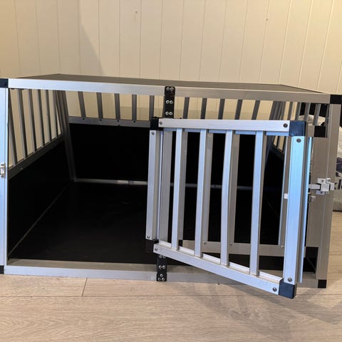 Dobbelt hundebur med avtagbar skillevegg. Lite brukt da det ble for stort for våre hunder.