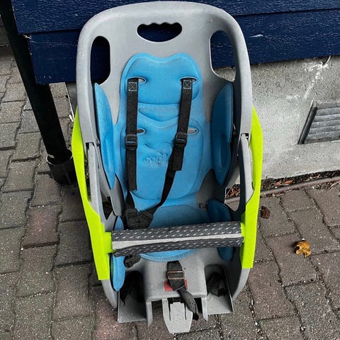 Hamax sykkelsete, med mulighet for å endre sittevinkel (sleepy?) .
