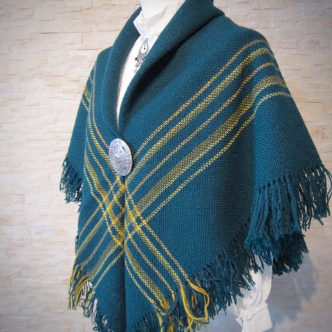Sjalet er vevet i spesialfarget garn til blå romeriksbunad. Str: 120x120 cm. + 8 cm knyttede frynser.