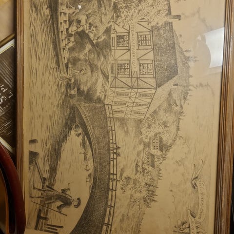 Kulltegning av tømmerkjøring, ca1935-1940. H 34 B 44. Kommer med ramme og glass