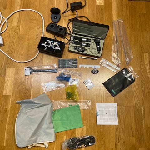Ophthalmisk utstyr for å sjekke karakteristikker til linser/linseglass. Denne har vært brukt av et enkeltmannsforetak/underleverandør til Tomra fra den gang man hadde norsk leveranse på slike deler. Jeg arvet den og siden den gang har den kun stått lagret. Nå er det på tide at noen kanskje får satt den i drift igjen.