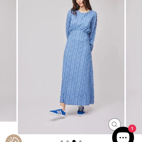Kjole i blå og hvit mønstret.