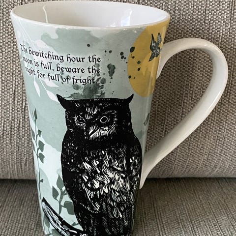 Stor latte krus kopp kaffe te sjokolade ugle Halloween ravn katt hodeskalle