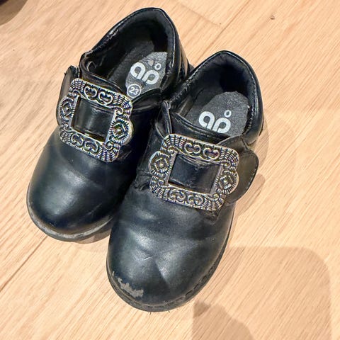 Svarte pensko brukt til bunad/frstdrakt 1 gang. Som ny, men er litt slitasje forran, men ikke noe sjenerende (se bilde)