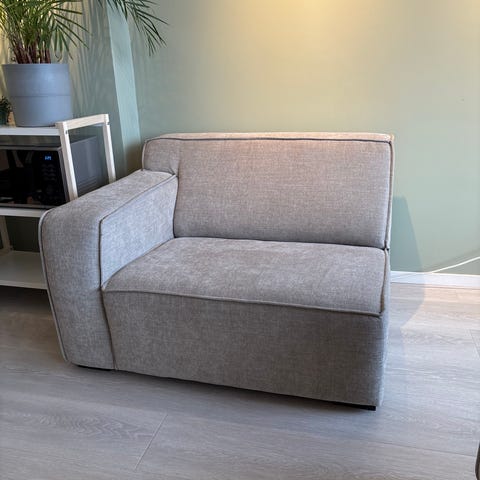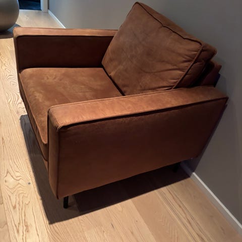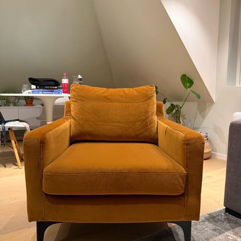 Flott lenestol i gullaktig farge. Gjør seg som kontrast mot de fleste andre farger God å sitte i. Selges pga oppussing.