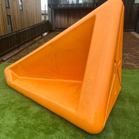 Et par av beina er kappet (da disse går ned i bakken for å være mer stabilt, og egentlig skal støpes fast)