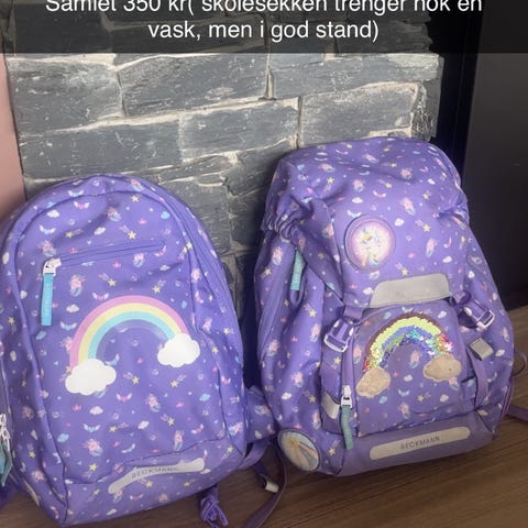 Pent brukt Beckman skolesekk for 1.-2klasse. Kun brukt ca.6mnd. Ingen slitasjer inni/utenpå. Regn trekk følger med. Borrelås pynt på siden er slitt og lyset på sekken funker ikke optimalt(lite batteri). Pennal er pent brukt med bruks merker inni pennalet. **Ved rask henting selges for 300**