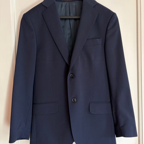 Pen mørk blå dress fra Oscar Jacobson, kjøpt ny på Høyer Trondheim. Brukt under 5 ganger. Jakke og bukse. Nypris var 5500kr.