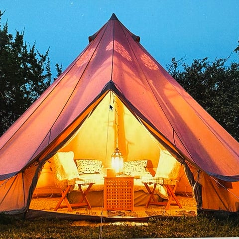 Teltet måler ca 4 x 3 meter og er rett over 2 meter på det høyeste. Dobbelt innertelt (hvert har mål på 1,2 x 1,2 x 2 meter).