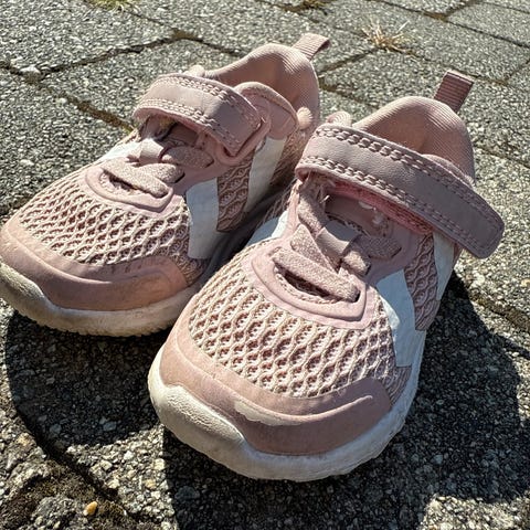 Søte rosa joggesko til jente. Ble veldig lite brukt da jenten vår vokst ut fra disse mens vi var på ferie. Litt små i størrelsen.