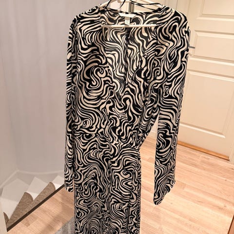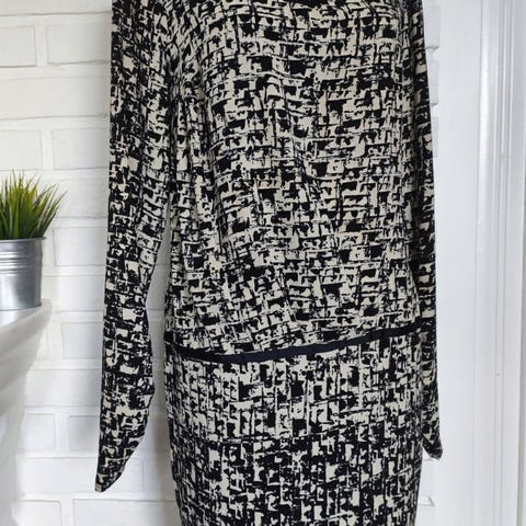 Stilig sort / hvit kjole i psykedelisk mønster - str M