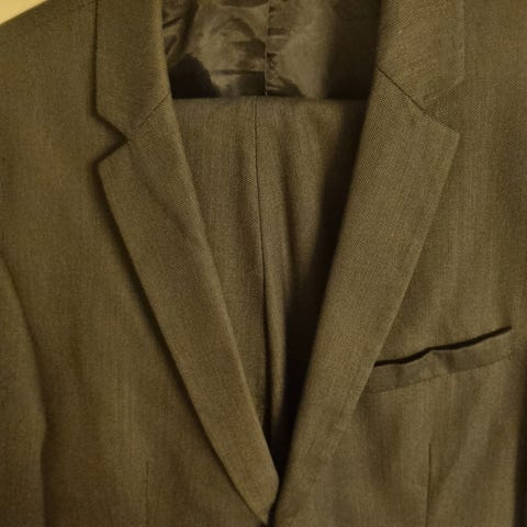 Pen blå dress med hvit skjorte