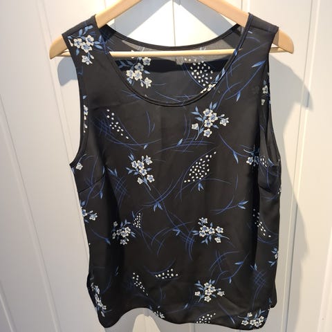 Fin singlet-topp fra Loft i blått med blomster. Polyester. Ikke ettersittende. Str. M (passer også fint til L)