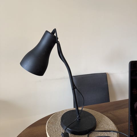 Svarte lamper høyde 38,5 cm. Gullforgylt inne. Brukt knapt en uke da de er litt for korte pga nattbord. Kostet 600 pr stk. selges begge for 400