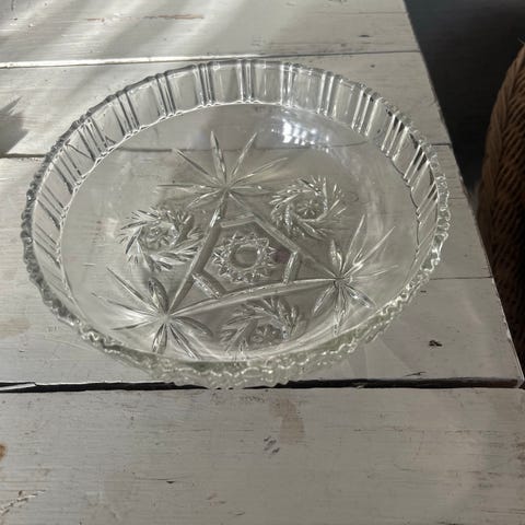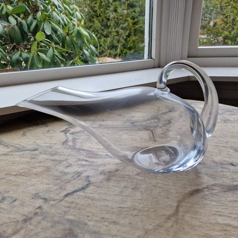 Både bollen og øsa er av krystall. Dyp, fin klang i bollen. Solid, 4-5 mm godstykkelse, ingen skader, riper, skår el. Som ny.