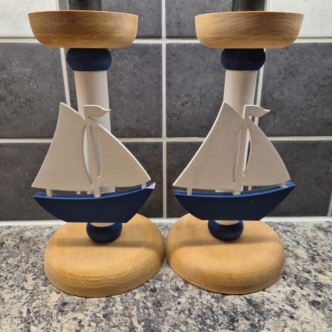 Et spesielt utvalg av håndlagde abstrakte trefigurer og en hund. Passer inn i et litt vintage eller rustikk miljø. Kjenner dessverre ikke navn på kunstner eller treskjærer. Ikke nye, men vet ikke alder. Se størrelse under bildene.