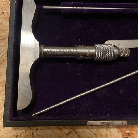 Vintage presisjonsmikrometer / dybdemåler – i originalt futteral
