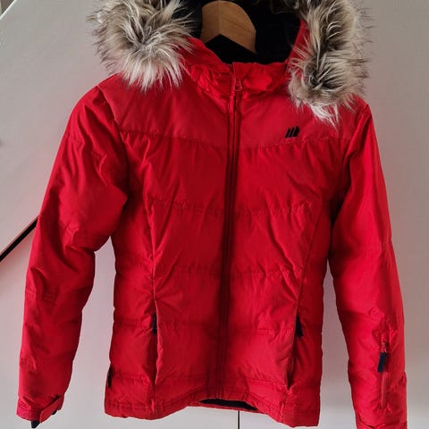 Flott dunjakke (89% dun) til jente fra Skogstad i str 12 år selges kr 250. Nydelig blåfarge, samsvarer best med fargen på siste bildet. Har en god hette med "pels" som kan tas av om ønskelig, og borrelås for justering bak på hetta. . Frontlommer med glidelås og ekstra lomme på venstre arm, ypperlig til for eks heiskort. Kan strammes i livet og har armmansjett som holder snøen ute. Et ørlite hull øverst på venstre skulder (se bilde), men har ingen betydning for bruken. Nyvasket og nytromlet. Kan hentes i Trondheim.