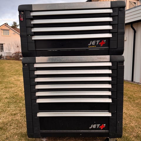 Super praktisk med hjul og trillehåndtak. Du får plass til alle verktøy du trenger. Solid konstruksjon som tåler juling. Kodelås.