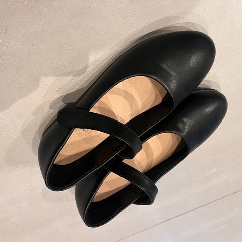 Ballerinasko. Alle ubrukte utenom det gule paret som er litt brukt.