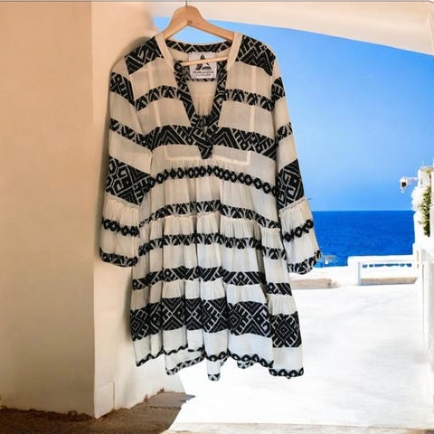 Flott kjole fra Pearl & Caviar. Bohemsk, gresk-inspirert. 100% bomull. Tykt og godt stoff