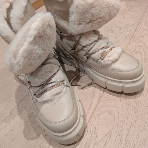 De er lite brukt, og ingen synlig slitasje på utsiden eller såle.