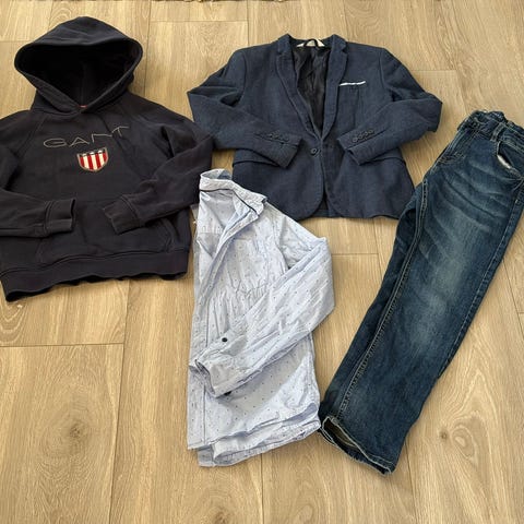 Fint brukt, ingen bruksmerker eller slitasje.den blå genseren og buksen er nesten ikke brukt.