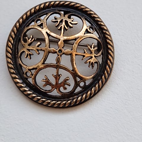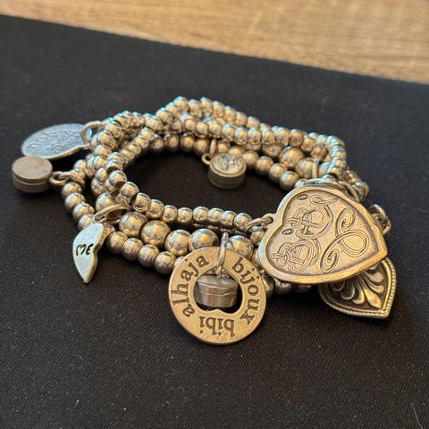 Kraftig smykke, blanding av ‘gull’, ‘bronse’ og ‘messing’ glassperler.