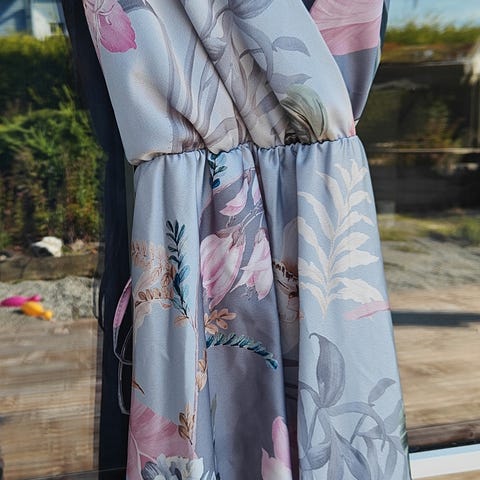 Selger min nydelig kjole fra Floyd, modell Ariel – en ettertraktet og utgått modell i en elegant grønnfarge. Kjolen er laget i delikat blonde med diskret blomstermønster og har et smalt, feminint snitt som sitter flatterende på kroppen.