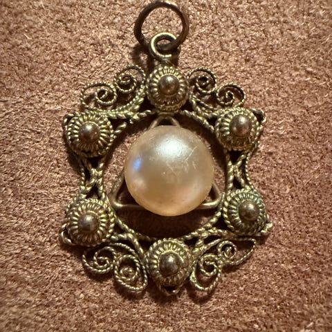 Utrolig fint eldre anheng i sølv med gull