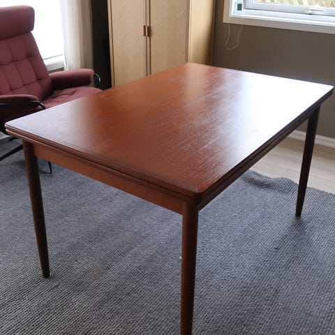 Teakbord krever litt vedlikehhold. Man kan få et bord som ser helt nedslitt ut til å bli som nytt,