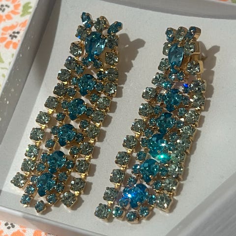 En mindre versjon av våre bestselgende Penelope øredobber. Iøynefallende statement-øredobber. Gullbelagt med krystaller laget av høyeste kvalitet,
