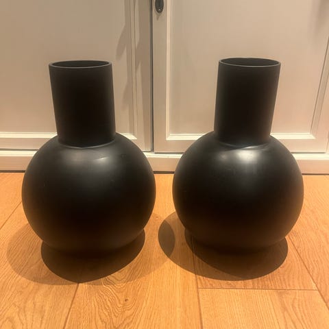 5 stk rosa vaser fra Kremmerhuset selges samlet. En liten skade på den ene, ellers fine og hele. 12 cm i diameter.