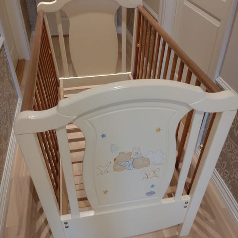 We sell this bed 60x120 including mattress (with mattress protection bed sheet) and including the small barrier.