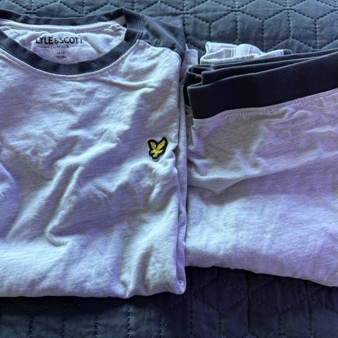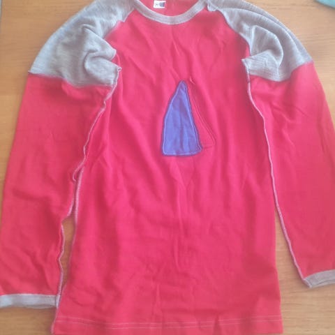 Blåstripete Janus ullgenser str 134/140. Et par anmerkninger. 2 hull (kan syes). Et par grønne flekker som ikke er så langt unna blåfargen og et par veldig svake merker. Genser man fint kan ha under andre plagg om man ikke vil vise anmerkningene. Hentes eller sendes mot frakt.