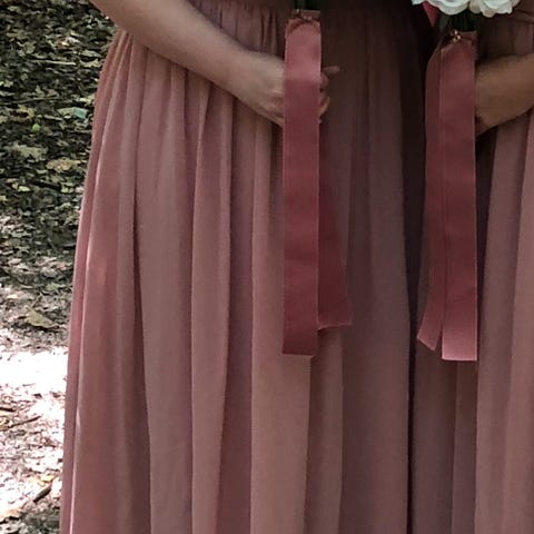 Vakker liten kjole som er blitt brukt som brudepikekjole for 22 år siden. Kjolen har ligget beskyttet i pose på loftet siden da. Sko i str 27 kan følge med.