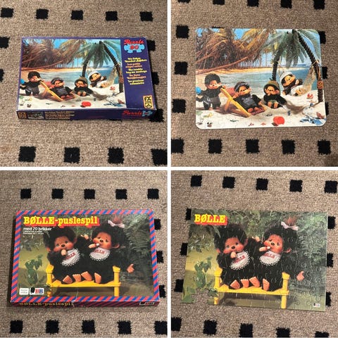 Selger to puslespill med motiv Monchhichi.