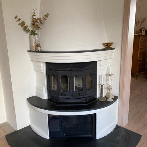 Kjøpt brukt fra Finn.no selv, og brukt i 3 år - men nå trenger vi en mindre peis. Peisen er opprinnelig fra Danmark, og fra 1987. Glasspeisen er superhyggelig å se på i bruk for de store glassvinduene på tre sider gir masse innsyn til flammene fra alle vinkler i stua.