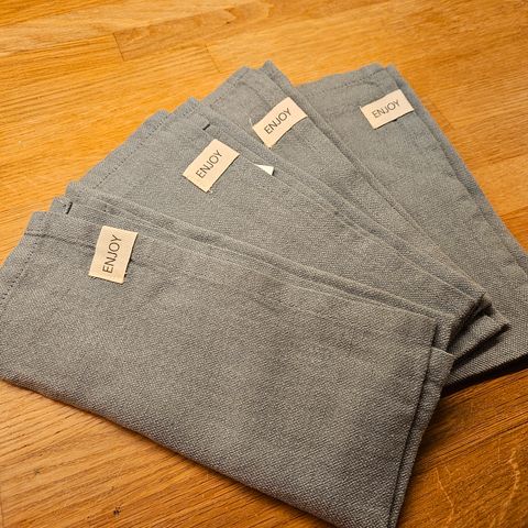 Helt nye linservietter. Fikk til jul, men fikk andre vi valgte å beholde. Disse har derfor ligget i et skap fram til nå.