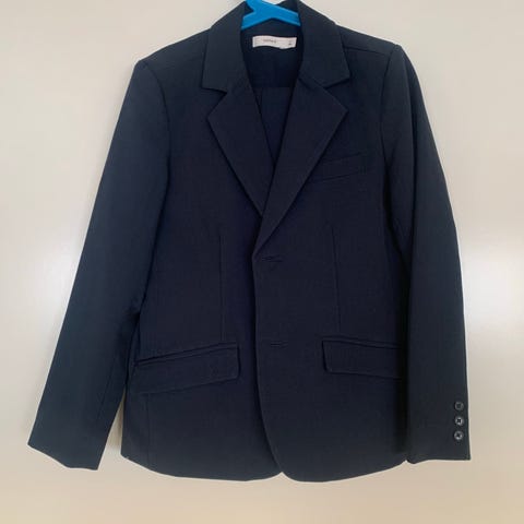 Dress (bukse og jakke) og 2 skjorter i str 140 selges komplett. Dressen er sort, mens det er en hvit og en blå skjorte. Lite brukt, så er like helt og pent.