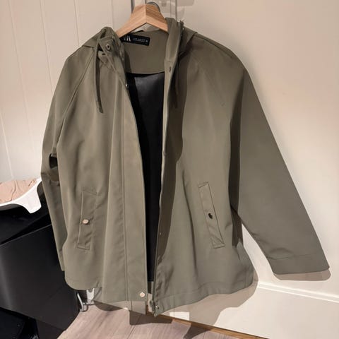 Selger en helt ny, lang regnjakke i str xl. Kunn prøvd.