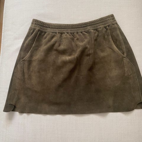 Jeg selger et nytt, vakkert skjørt laget av mykt semsket skinn, nytt med merkelapp. Jeg kjøpte en for liten en fra det eksklusive merket La Mania, størrelsen på etiketten er 36. Den passer 34 og small 36. Mål: midje 35 cm, hofter 45 cm, lengde 52 cm. vakker farge.