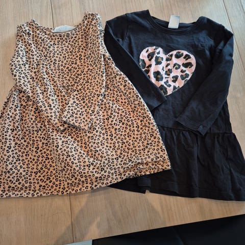 Kjolen er 100% viskose str 100. Trøye str 110/116 bomull. Genser str 98/104 bomull