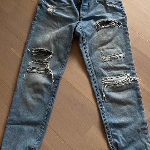 Brukt få ganger. God lengde i bena, så litt slitte nederst (se bilde). Ellers hele og pene.