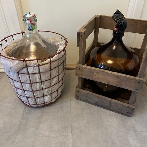 2 gamle vinballonger vurderes solgt. Alder ukjent, begge i god stand. Tar ca 25 liter tror jeg. Pris som ønskes er kr. 300,- pr. stykk. Sendes ikke, må hentes av kjøper.