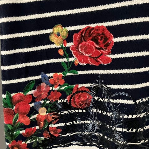 Vavite bomulls topp i fin lys syrin farge med paljetter. Myk og strech materiale. Halvlange ermer. Brukt men i god stand.