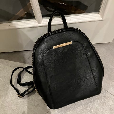 Ny svart ryggsekk selges, ca.20 cm×20 cm, kjøpt i butikken Via Victoria. Pris før:1049 kr, selges for rimelig pris, har oppbevaringspose.