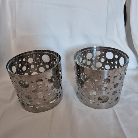 To telysholdere med sugekopp, kjøpt på IKEA. Veldig lite brukt, og ikke brukt på ca 5 år. Gummien virker fortsatt veldig fin og bøyelig (dvs at de fortsatt kan feste seg på veggen).