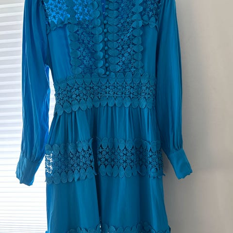 Nydelig blå kjole fra Monsoon, pent brukt av ett barn en gang så fremstår som ny str 152/ 12-13 år.