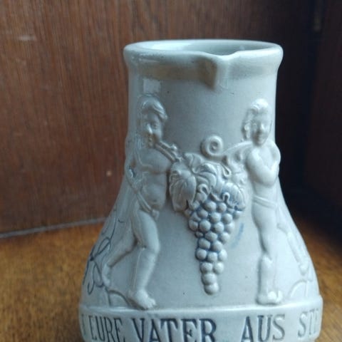 selger en flott vinkanne produsert av tyske Steinzeugfabrik Simon Peter Gerz, stempelet ble brukt på slutten av 1800-tallet, H: ca. 36cm, kannen er uskadet, kan sendes mot at kjøperen betaler sendingen